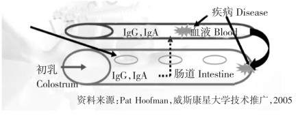 (1)快速(Quickness):新生犊牛对初乳中的免疫球蛋白(如IgG)的吸收能力最强。随着时间的推移,犊牛小肠渗透通道逐渐关闭,免疫球蛋白的吸收能力以每小时5%速率下降,出生24h 后渗透通道完全关闭,犊牛不再具备吸收免疫球蛋白的能力。因此,初乳最佳的饲喂时间是出生后的2h 内。