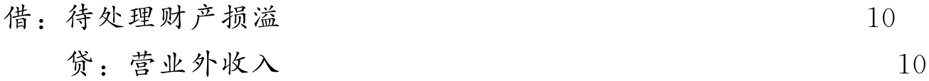 【例2-1】顺达商贸有限公司在盘点现金时发现长款10元,经核查未能发现其实际原因,经财务主管同意,作为营业外收入处理。应编制如下会计分录,反映清查结果。