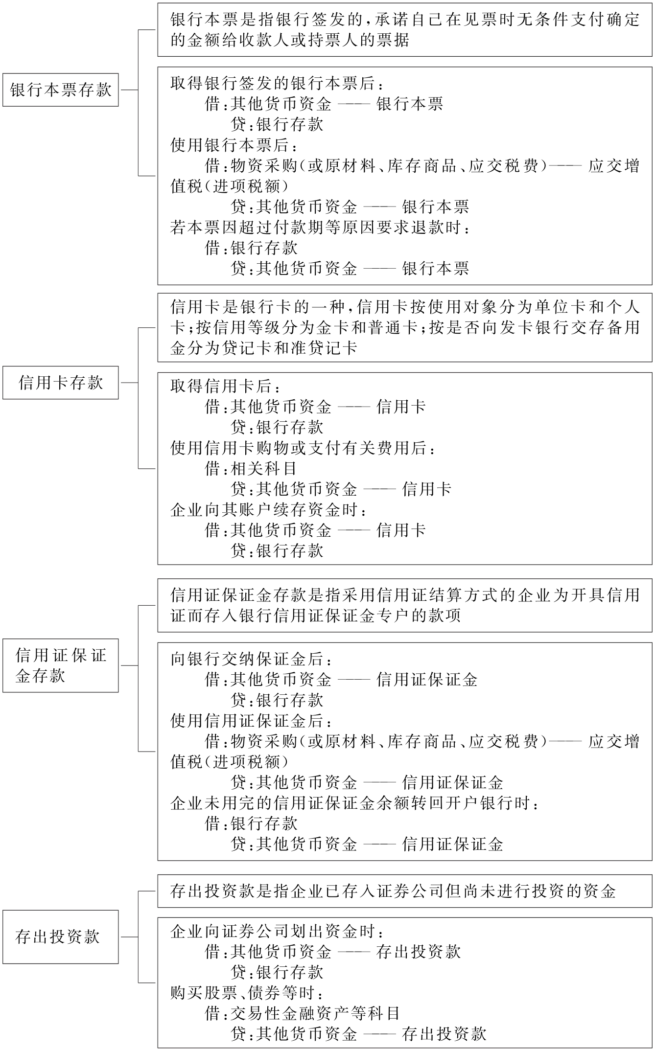 其他货币资金是指企业除库存现金、银行存款以外的各种货币资金,主要包括银行汇票存款、银行本票存款、信用卡存款、信用证保证金存款、存出投资款、外埠存款等。