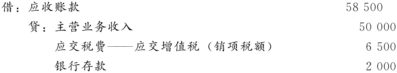【例3-5】A公司向B公司销售了一批水泥,货款为50 000元,销项税额为6 500元,代垫运费2 000元,已办妥银行收款手续。