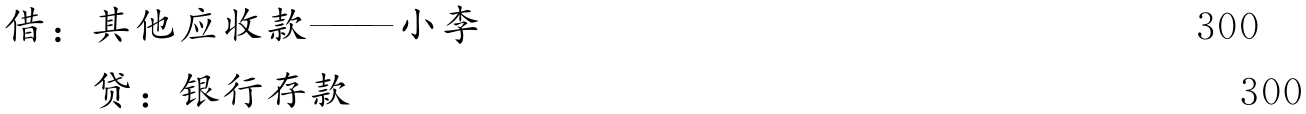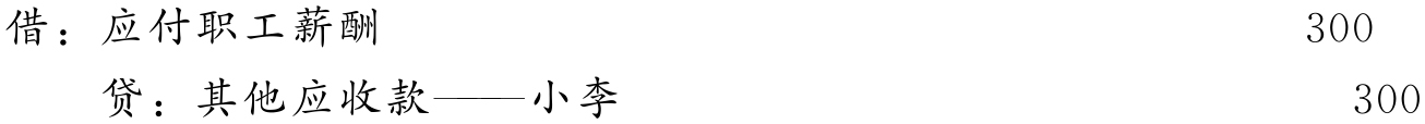 【例3-10】顺达商贸有限公司以现金的形式为员工小李代垫应由其个人负担的培训费300元,打算从其下月工资中扣回。对此,公司应进行如下会计处理: