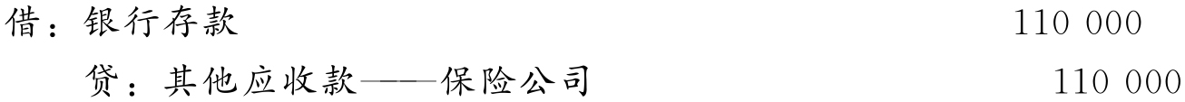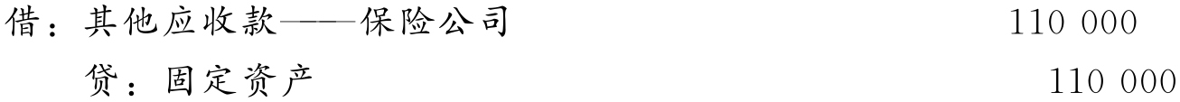 【例3-9】顺达商贸有限公司一批库存的电子仪器发生毁损,这批库存物资已投保了企业财产险,按保险合同规定,应由保险公司赔偿损失110 000元,经现场勘查之后,保险公司已同意按照约定赔偿,但赔款一周之后才能支付。该公司对以上的业务应进行以下会计处理: