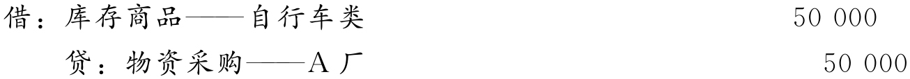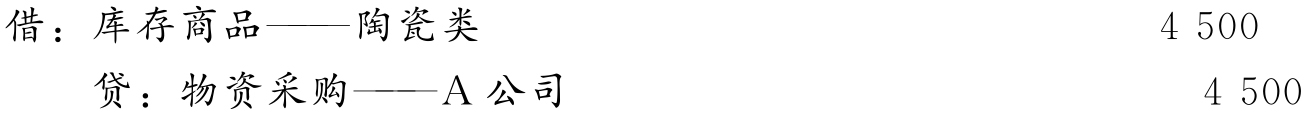 (2)财会部门根据储运部门转来的“收货单”,如表4-1经审核无误后,结转商品采购成本,应编制会计分录如下: