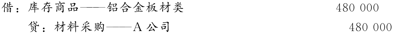 (3)7月17日,储运部门转来“收货单”(入库联),16日发来的铝合金板材100吨已全部验收入库,结转商品采购成本,编制会计分录如下: