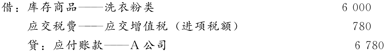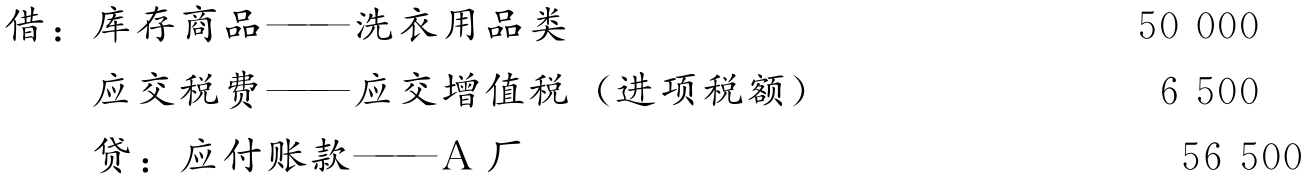 (1)6月1日,赊购洗衣皂一批,货款为50 000元,增值税额为6 500元,洗衣皂已验收入库。