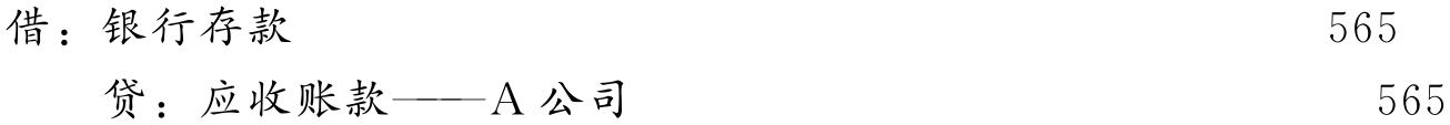 (3)经联系后,A公司同意将拒收的10个陶瓷手盆退回。3天后,A公司汇来退货款、增值税额合计565元,存入银行,编制分录如下: