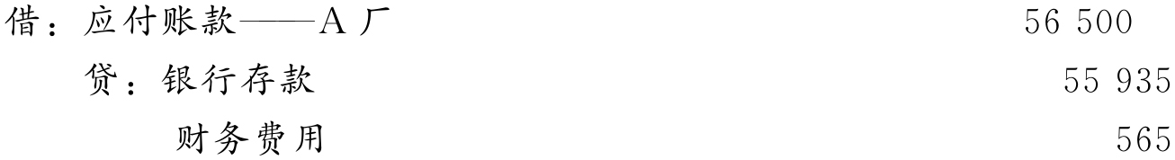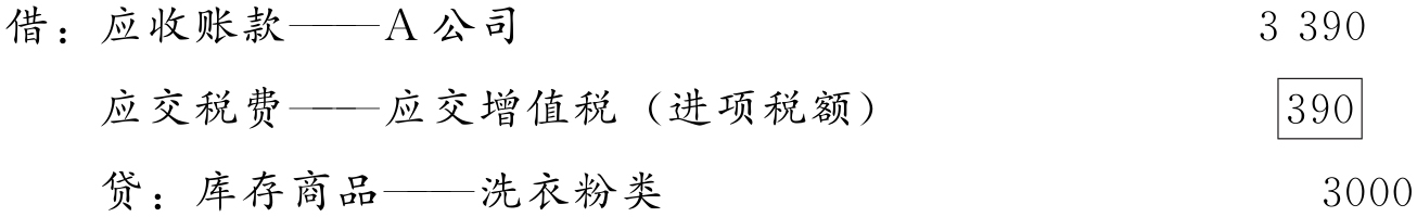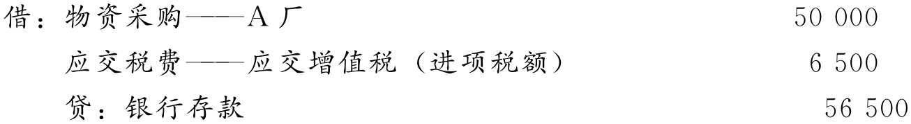 (2)6月11日,签发转账支票56 500元,支付洗衣皂货款和增值税额,编制分录如下: