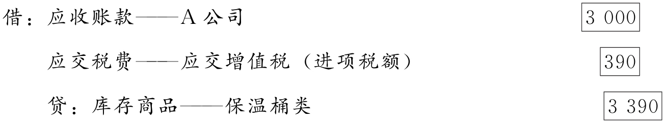 (1)2018年8月5日,收到A公司退货的红字专用发票,开列退货款3 000元,退增值税额390元,并已收到业务部门转来的“进货退出单”,顺达商贸有限公司应编制会计分录如下: