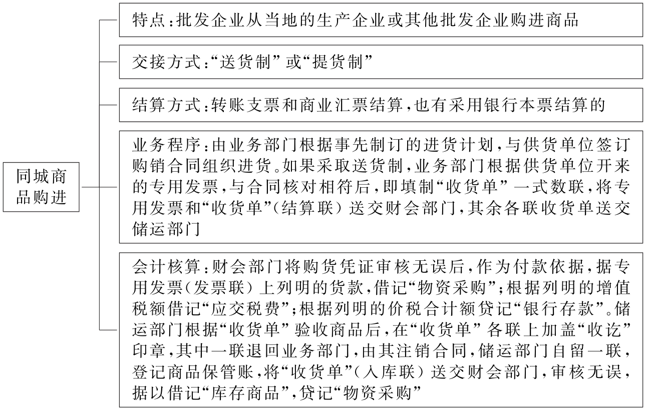 (二)同城商品购进的业务程序及其核算