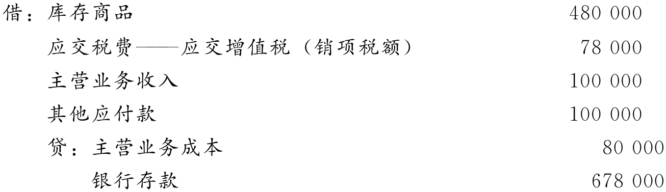 (4)6月30日发生销售退回,实际退货量为1 000件,款项已经支付:
