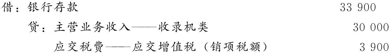 (2)5月15日,销售达声牌收音机50只,共计货款30 000元,增值税额为3 900元,收到转账支票送存银行。