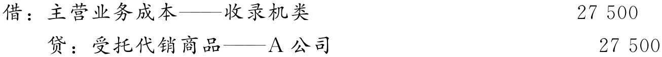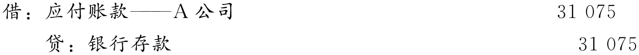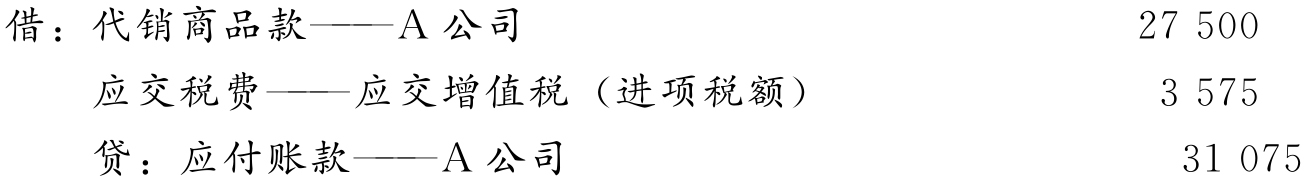 (3)5月31日,开出代销商品清单,并签发转账支票31 075元,支付50只收录机货款及增值税额,编制分录如下:
