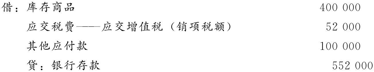 如查明该50箱花瓶是质量不好,商品已退回,业务部门转来红字专用发票,财会部门审核无误后,编制分录如下: