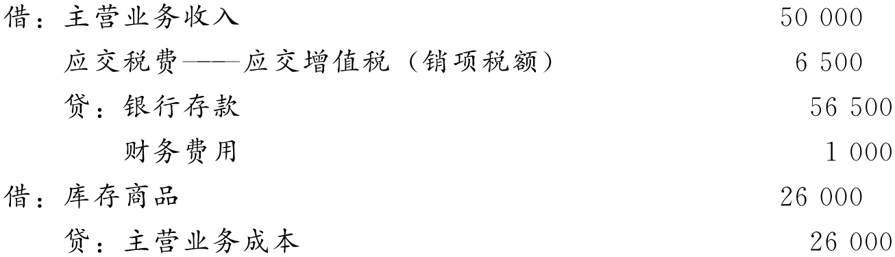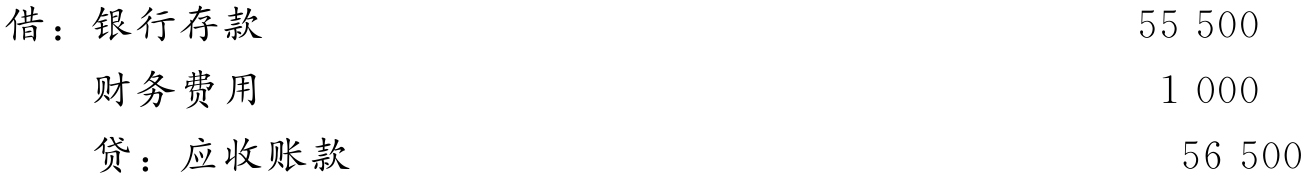 (2)在2018年12月27日收到货款时,按销售总价50 000元的2%享受现金折扣1 000元,实际收款55 500元: