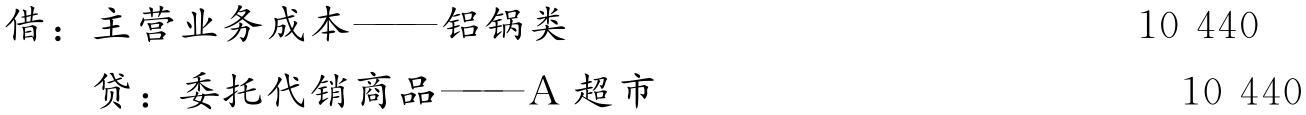 (1)4月1日,将铸铁炒锅交付A超市时,编制分录如下: