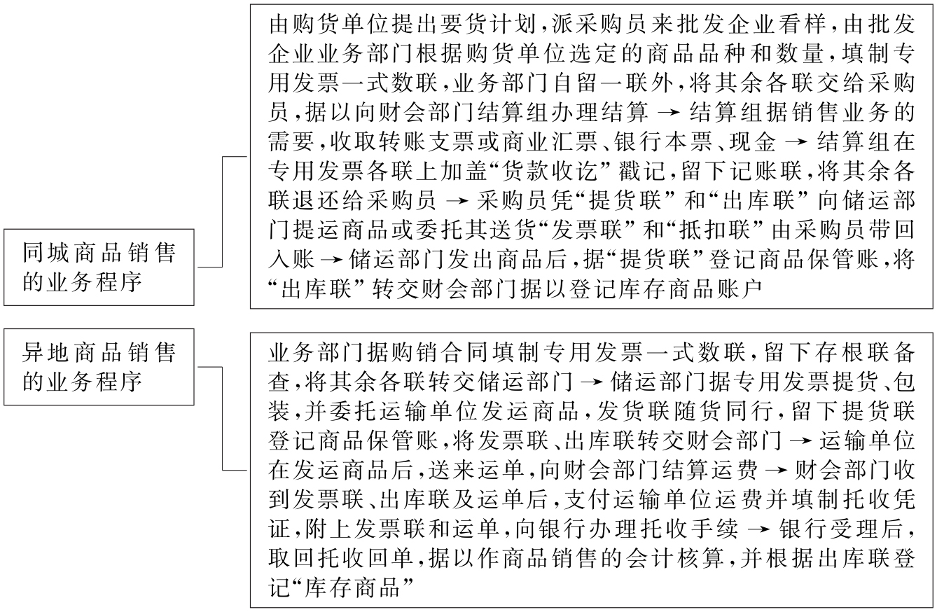 批发企业的销售业务一般是根据批准的销货计划,与购货单位订立购销合同,或由购货单位提出要货计划,然后有计划地组织供应的业务。商品销售按照地区不同,可分为同城销售和异地销售。