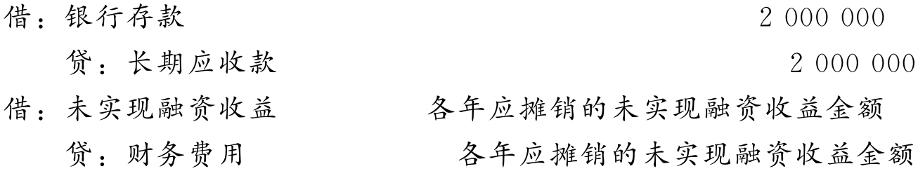 分析:该项销售应收款项的收取时间较长,相当于对客户提供信贷,具有融资性质,因此,应按1 300万元确认收入,合同总价款1 500万元与1 300万元的差额200万元应当作为未实现融资收益,在5年内采用实际利率法进行摊销,冲减财务费用。