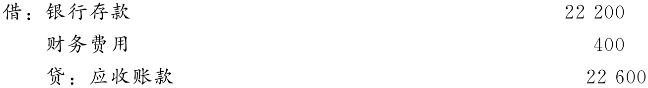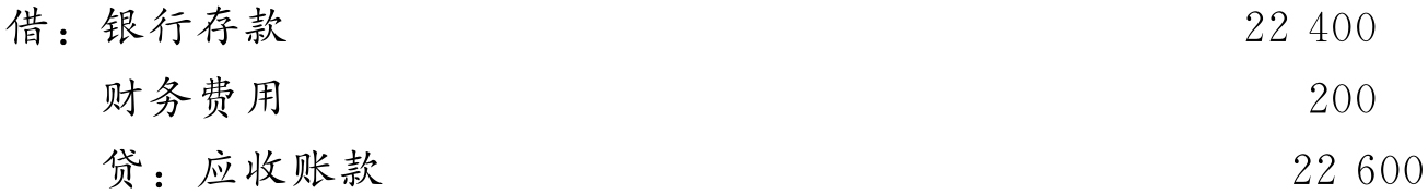 (2)如果A公司在7月9日付清货款,则按销售总价20 000元的2%享受现金折扣400元,实际付款22 200元: