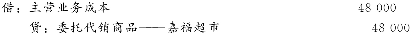 (3)同时结转已售委托代销商品的销售成本48 000元,编制分录如下: