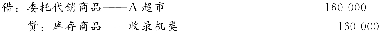 【例4-18】顺达机电产品公司是一家家用电器批发企业,主要通过商场代销的方式进行商品的销售。根据商品委托代销合同,将100台液晶电视委托A超市进行代销,这批电视机的购进单价成本为1 600元,销售单价为2 000元,增值税率为13%,按照合同规定,每个月末由A超市报送代销明细单,结算一次货款。