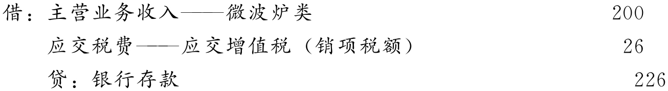 【例4-23】北京交电公司日前销售给A商厦100台800W微波炉,其单价为480元,增值税率为13%。今发现单价开错,该微波炉单价应为478元,开出红字专用发票,应退对方货款200元、增值税额26元,签发转账支票付讫,编制分录如下: