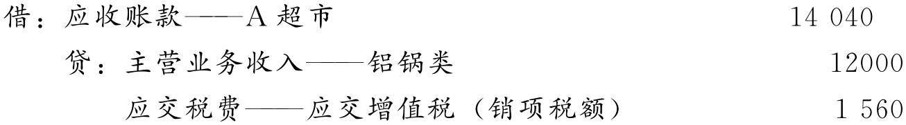 (2)4月30日,对方送来代销商品清单,代售了铸铁炒锅600只,共计货款12 000元,增值税额1 560元。