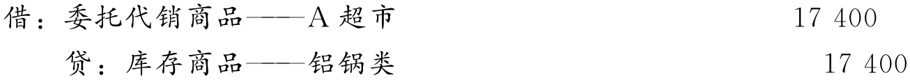【例4-20】顺达商贸有限公司将铸铁炒锅1 000只委托A超市代销,该铸铁炒锅购进单价为17.40元,销售单价为20元,增值税率为13%,合同规定每月末结算一次,代销手续费为7%。