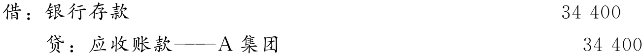 (3)2018年5月20日,接到银行转来A集团承付34 400元货款、增值税额及运费的收款通知,编制分录如下:
