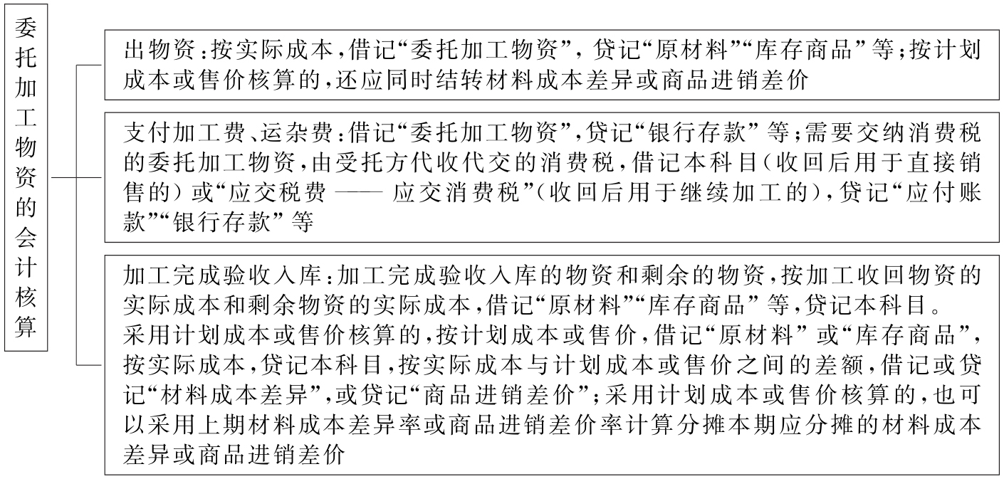 为了反映和监督委托加工物资增减变动及其结存情况,企业应当设置“委托加工物资”科目,借方登记委托加工物资的实际成本,贷方登记加工完成验收入库的物资的实际成本和剩余物资的实际成本,期末余额在借方,反映企业尚未完工的委托加工物资的实际成本和发出加工物资的运杂费等。委托加工物资也可以采用计划成本或售价进行核算,其方法与库存商品相似。