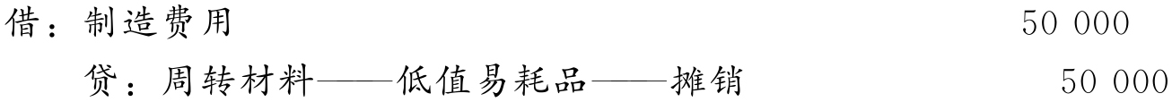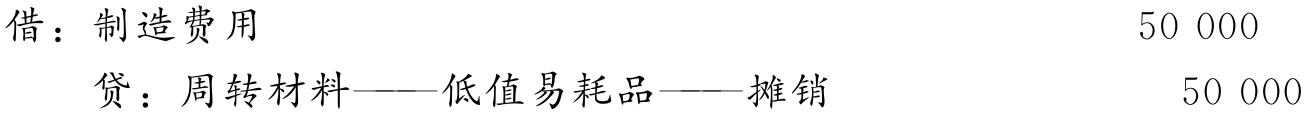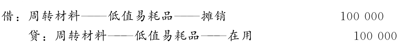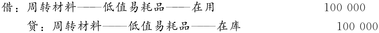 【例6-3】立兴商业公司的基本生产车间领用专用工具一批,实际成本为100 000元,采用五五摊销法进行摊销。该公司应做如下会计处理: