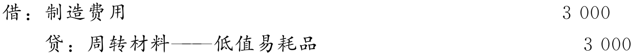 【例6-2】顺达商贸公司第一生产车间(该车间属于基本生产车间)领用一般工具一批,实际成本为3 000元,将其全部计入当期制造费用。该公司应做如下会计处理: