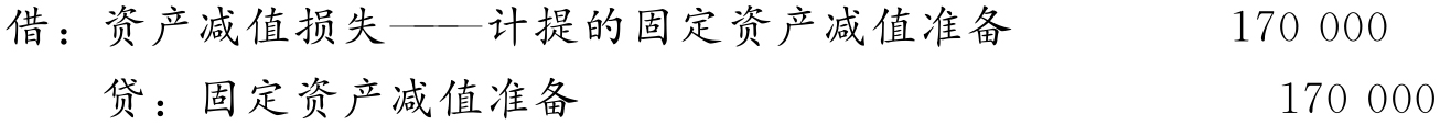 由于该冷藏设备的可收回金额为1 230 000元,账面价值为1 400 000元,可收回金额低于账面价值,应按两者之间的差额1 400 000-1 230 000=170 000元计提固定资产减值准备。顺达商贸公司应做如下会计处理: