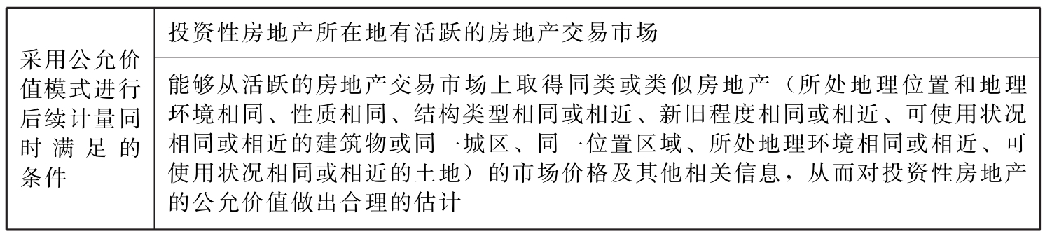 表9-5 采用公允价值模式进行后续计量同时满足的条件
