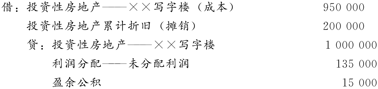 2018年1月1日,顺达商贸有限公司认为,出租的写字楼由于其所在地的房地产交易市场比较成熟,具备了采用公允价值模式计量的条件,决定对该项投资性房地产从成本模式转换为公允价值模式计量。该写字楼的原造价为1 000 000元,已计提折旧200 000元,账面价值为800 000元。2018年1月1日,该写字楼的公允价值为950 000元。假设顺达商贸有限公司按净利润的10%计提盈余公积。顺达商贸有限公司应该进行的账务处理如下: