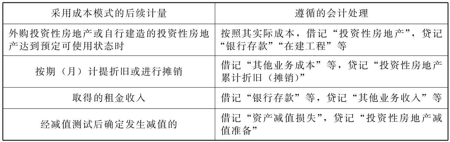 表9-4 采用成本模式进行后续计量的投资性房地产