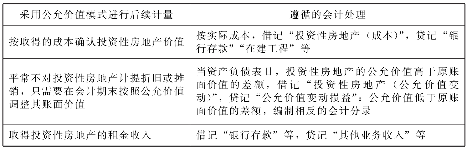 表9-6 采用公允价值模式进行后续计量的会计处理