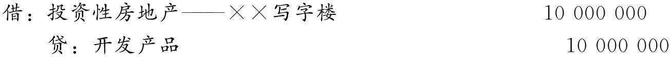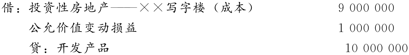【例9-4】顺达商贸有限公司是从事房地产开发业务的企业,2018年3月10日,顺达商贸有限公司与A公司签署了租赁协议,将其开发的一栋写字楼整体出租给A公司使用,租赁期开始日为2018年4月15日。2018年4月15日,该写字楼的账面余额10 000 000元,未计提存货跌价准备,转换后采用成本模式计量。