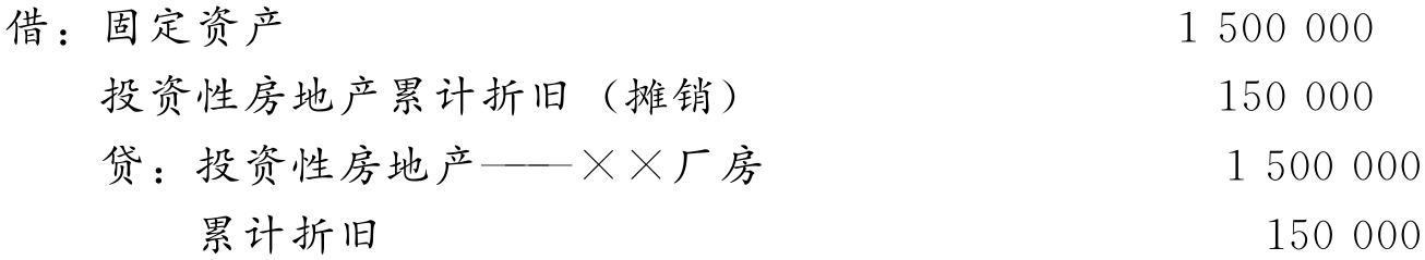 (一)采用成本模式计量的投资性房地产转为自用房地产