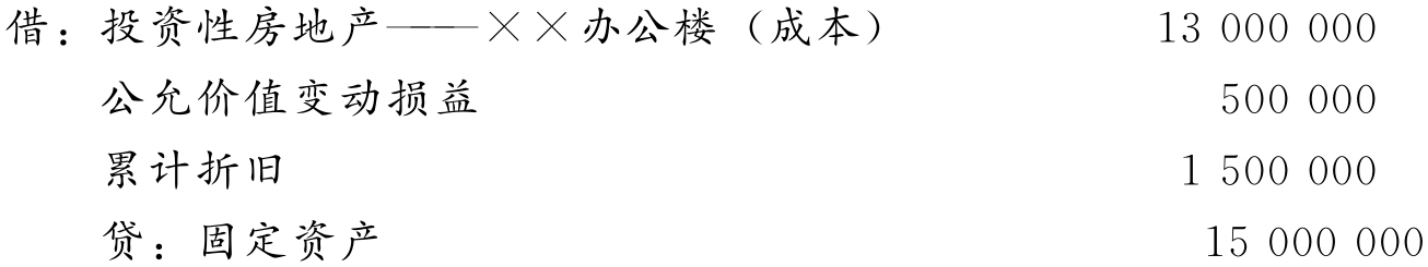 顺达商贸有限公司2019年1月1日,该办公楼的公允价值为13 000 000元,其原价为15 000 000元,已计提折旧1 500 000元。