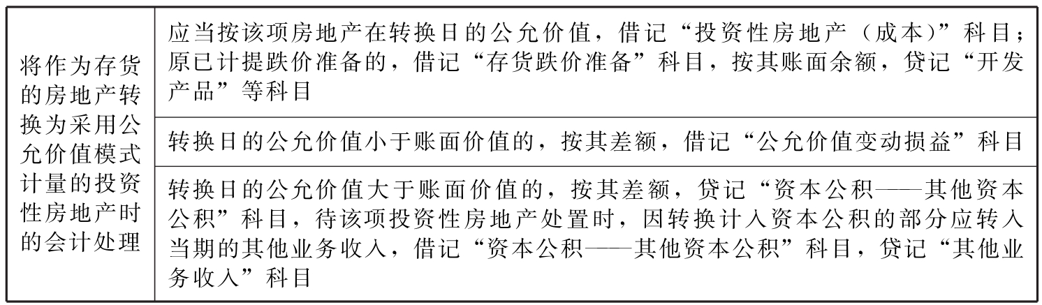 表9-11 作为存货的房地产转换为采用公允价值模式计量的投资性房地产时的会计处理