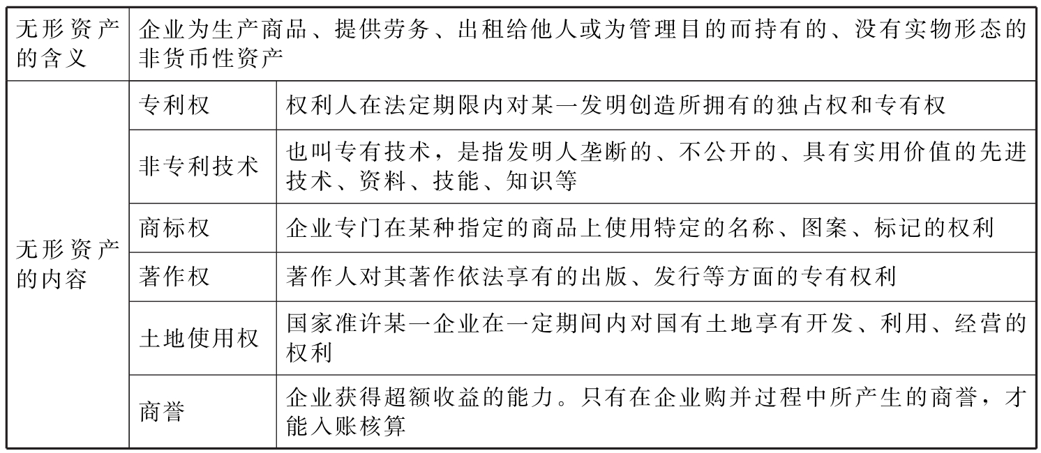 无形资产主要包括专利权、非专利技术、商标权、著作权、土地使用权、特许权等。