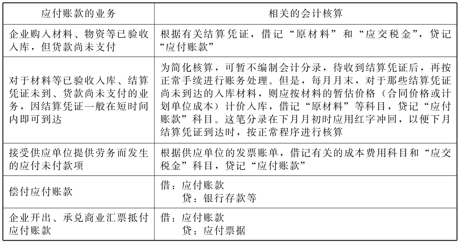 表11-5 应付账款的账务处理