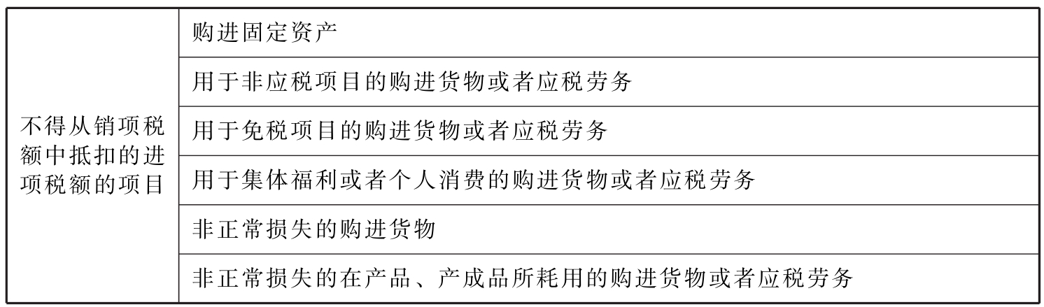 表11-14 不得从销项税额中抵扣的进项税额的项目