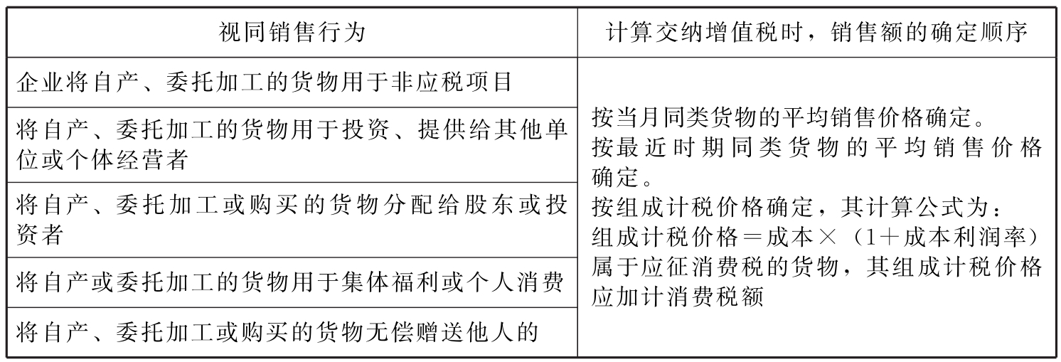 表11-15 视同销售行为及其计税时销售额的确定顺序