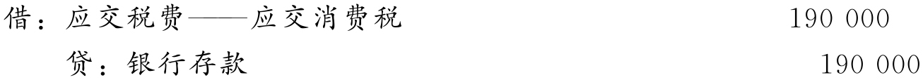 【例11-15】红星白酒厂生产和销售粮食白酒,其消费税税率为25%。7月份该厂销售粮食白酒50吨,其价款为800 000元(无价外费用),本月以银行存款实际交纳消费税190 000元。消费税应纳税额的计算以及编制的会计分录如下: