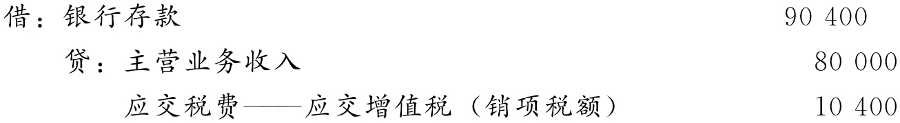 (1)销售甲产品一批,不含税的价格为80 000元,增值税销项税额为80 000×13%=10 400元,共计93 600元,款项收到存入银行: