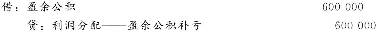 【例14-9】经股东大会批准,A股份有限公司用以前年度提取的盈余公积弥补当年亏损,当年弥补亏损的数额为600 000元。假定不考虑其他因素,A股份有限公司的会计分录如下: