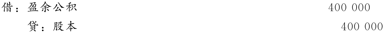 【例14-10】因扩大经营规模需要,经股东大会批准,精工股份有限公司将盈余公积400 000元转增股本。假定不考虑其他因素,精工股份有限公司的会计分录如下: