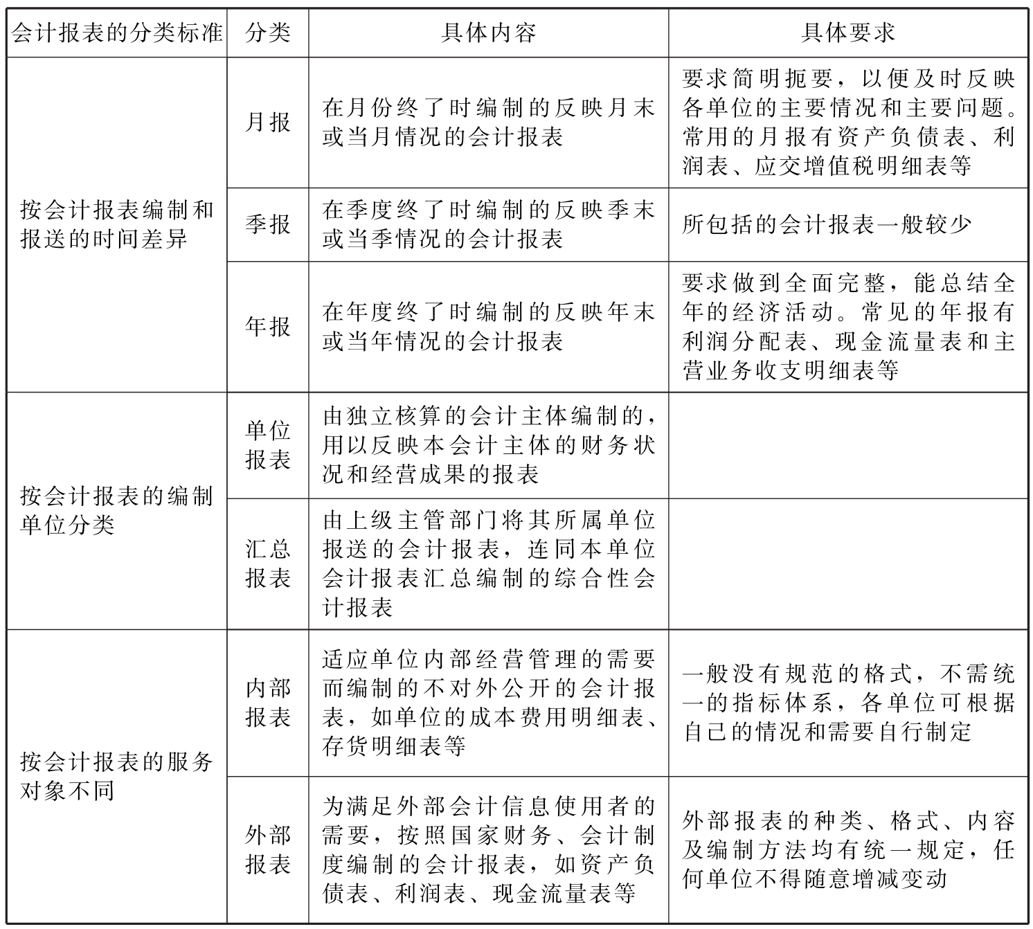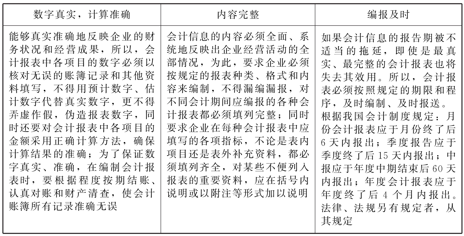 表15-4 会计报表的编制要求