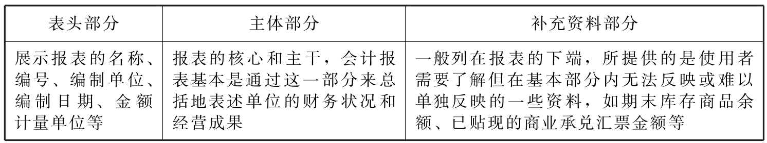 表15-3 会计报表的结构